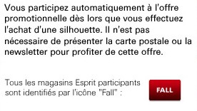 Pour connaître la liste des boutiques participantes, connectez-vous sur l’e-shop d’Esprit et cliquez sur le lien Store Finder qui se trouve tout en bas de la page !