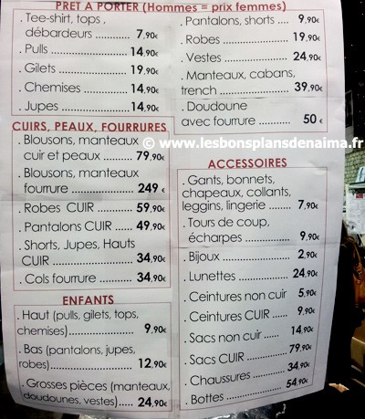 Côté prix, voici ceux de la précédente Braderie Kookaï (pas sûre sûre à 100% que ce soit les mêmes cette année) :