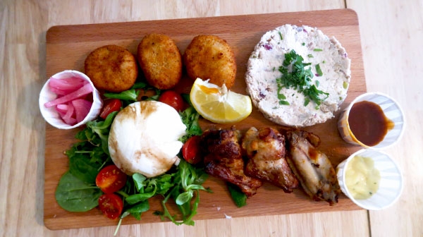 Planche du Roast : ailes de poulet, pépites (nuggets) de poulet, rillettes de poulet et burrata !