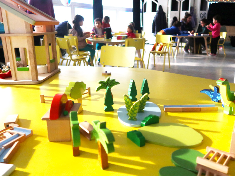 → Un bar à jouets dans lequel vous pouvez emprunter des jouets (puzzle, maison de poupée…) et des jeux de société. Pour vous amuser, vous pouvez ensuite vous installer dans l’une des deux grandes salles avec des tables !