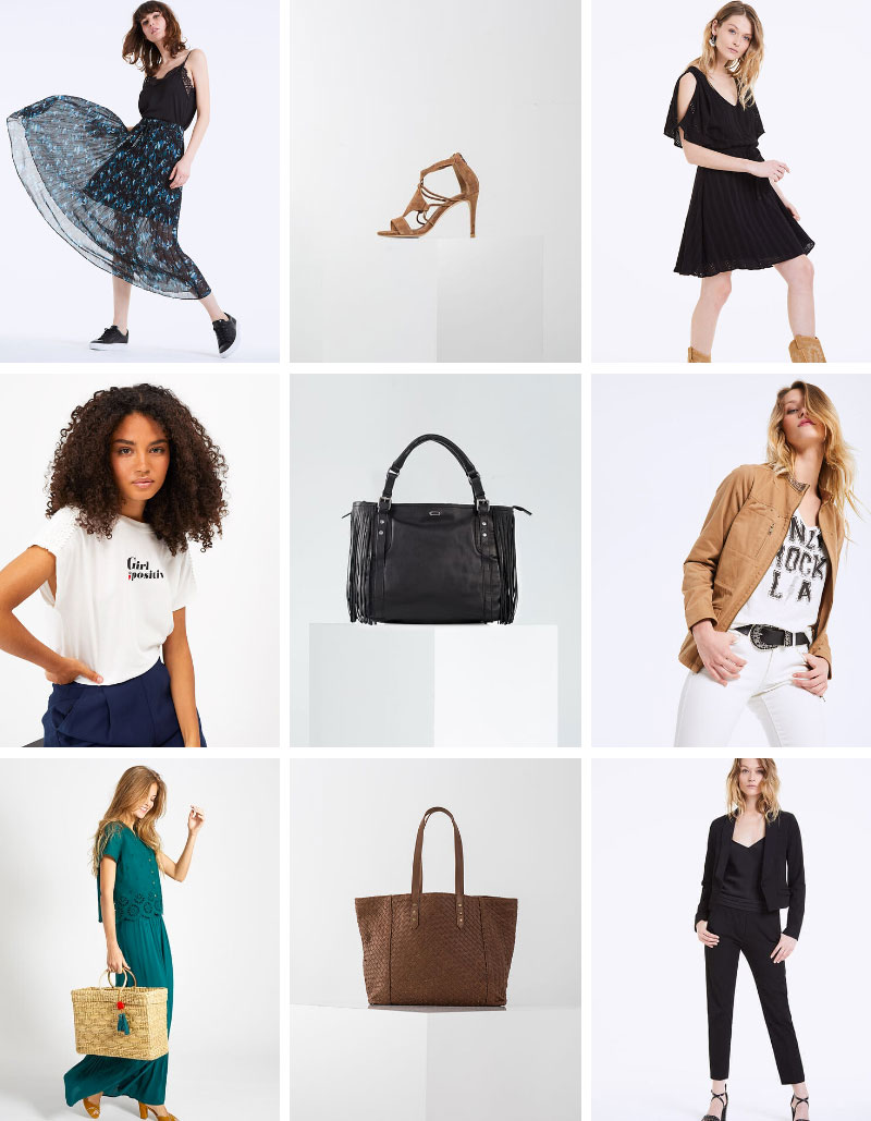 Marques : Gérard Darel, See by Chloé, Marc Jacobs, Vanessa Bruno, Furla, Adidas, Veja, Esprit, Suncoo, Levi’s, Bobbies, Caroll, Hipanema, Ikks, Nike, New Balance, Petite Mendigote, Lancaster…