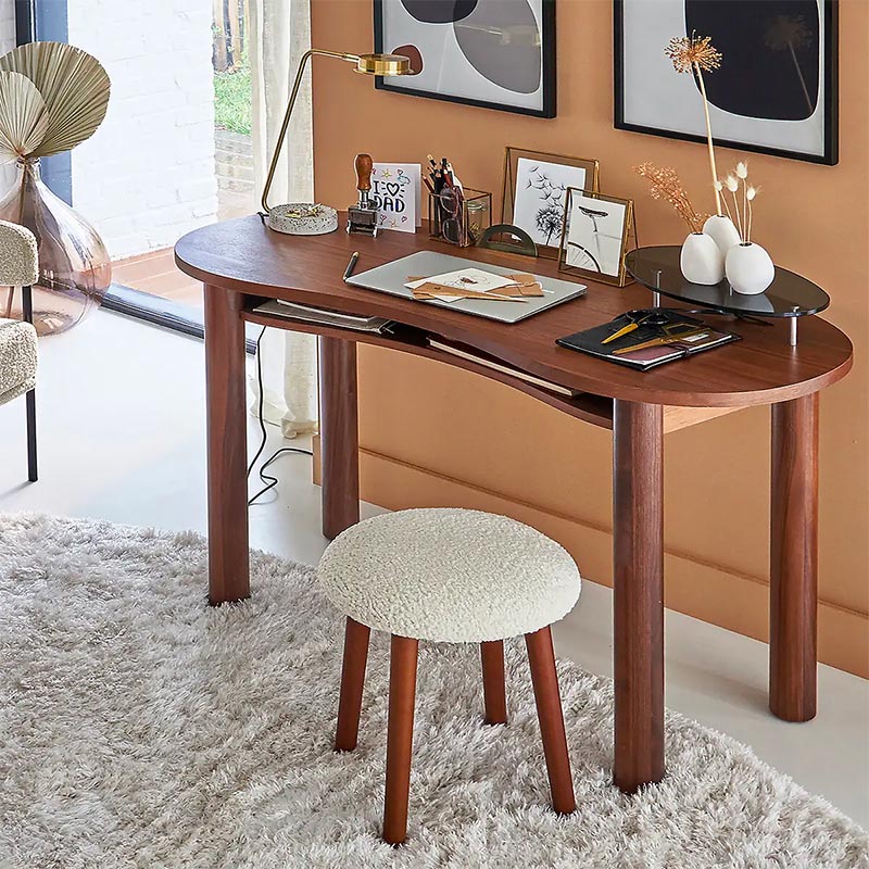 Bureau en noyer (438,03€ au lieu de 599€) – Tabouret bouclette (58,69€ au lieu de 69€) – Tapis écru (87,99€ au lieu de 109,99€) – Lot de 2 affiches imprimées et encadrées (125,99€)